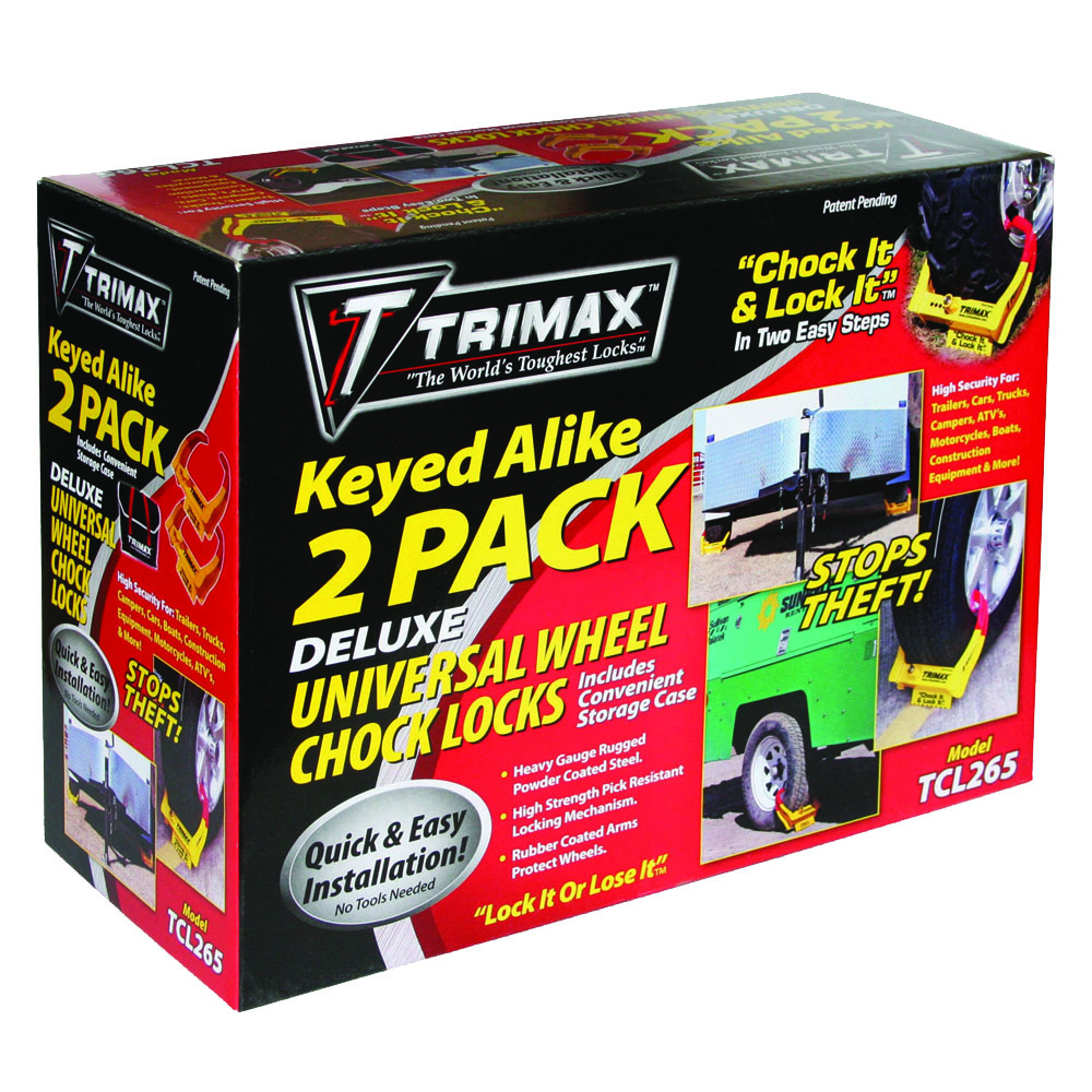 TRIMAX Chock Locks, 2 pack of Chock Locks keyed alike with convenient carry bag for storage. Chock your wheel and lock it up at the same time.